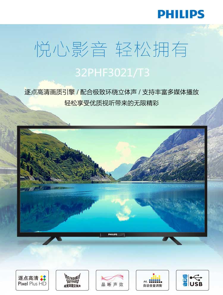 Philips/飞利浦 32英寸 LED液晶电视 32PHF3021/T3