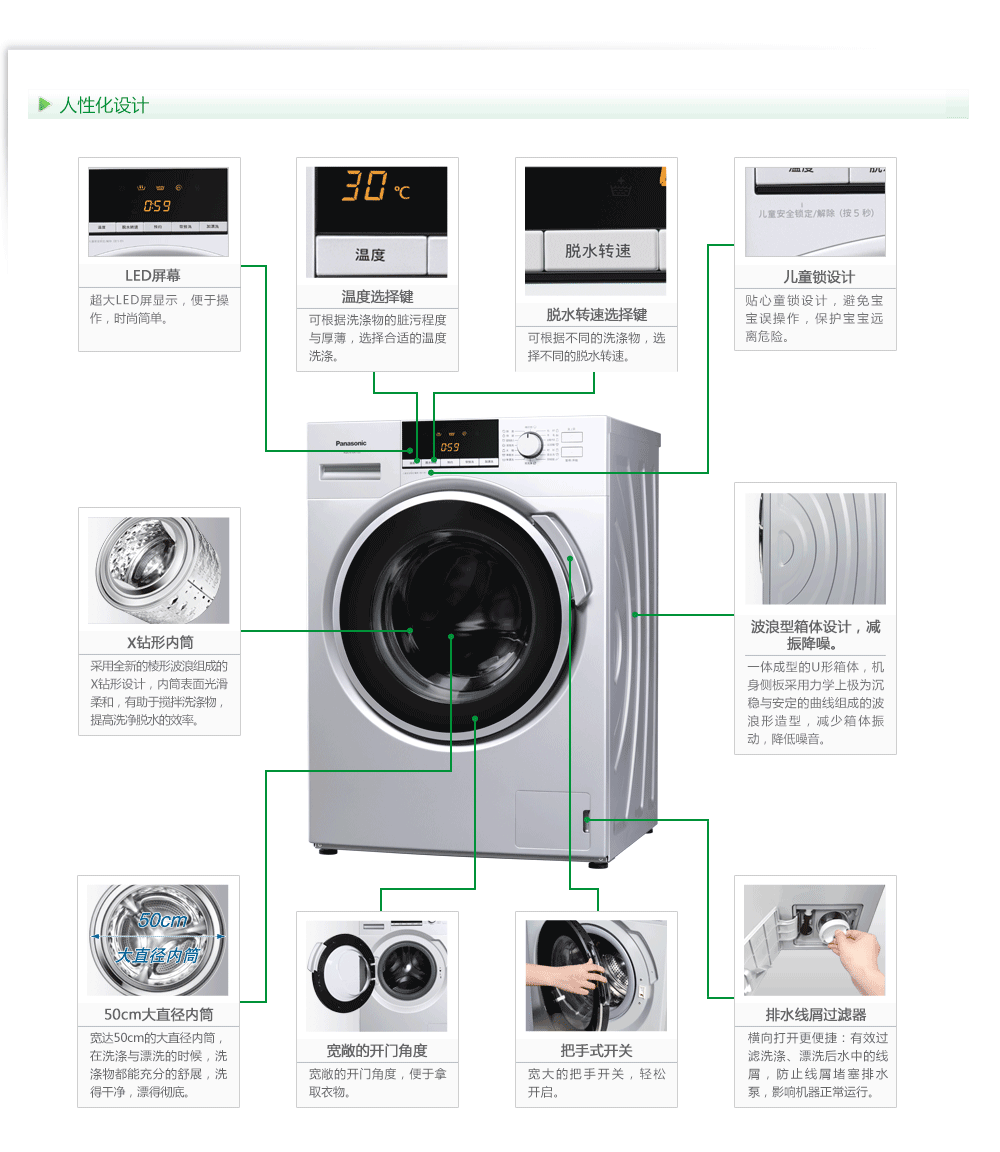 Panasonic/松下 全自动卧式滚筒洗衣机 XQG70-EA7122