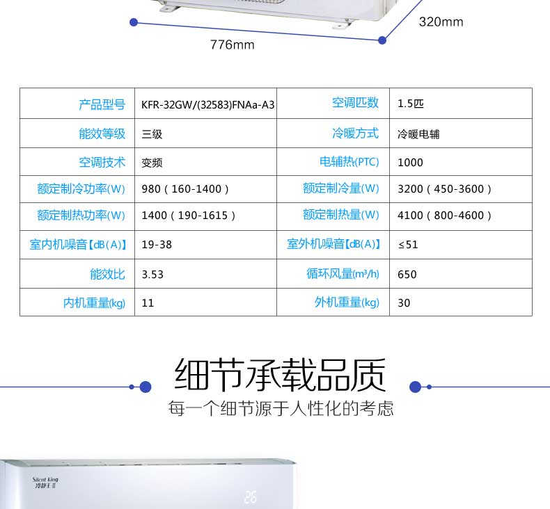 Gree/格力 小1.5匹 变频壁挂冷暖空调 32冷静王KFR-32GW/(32583)FNAa-A3