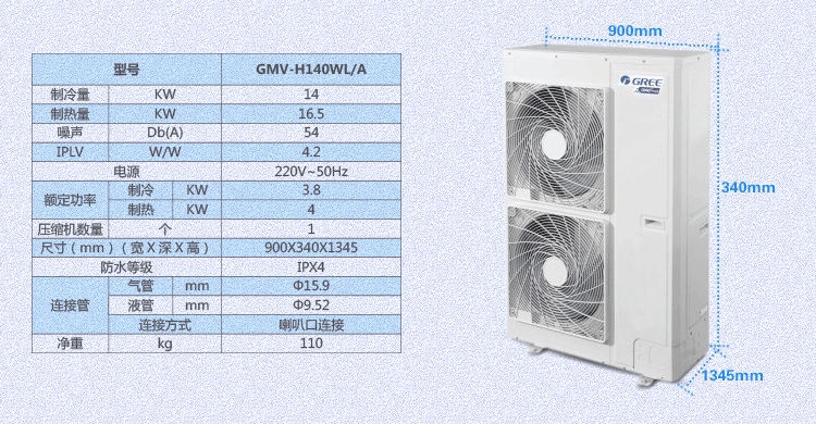 Gree/格力空调 5.6匹 变频冷暖五代多联机 一拖六 GMV-H140WL/A