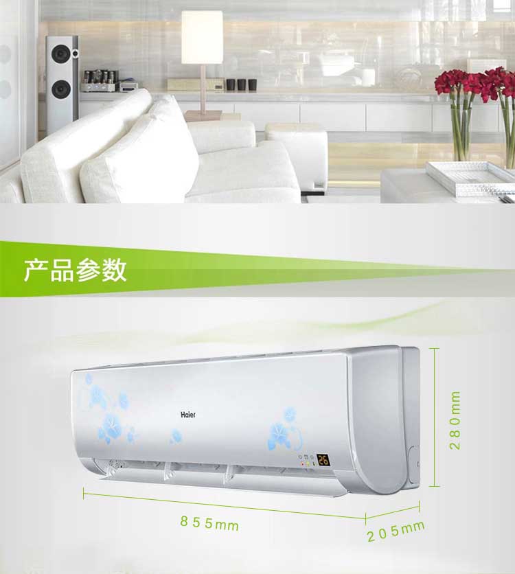 Haier/海尔 大1.5匹 定频壁挂冷暖空调 劲风系列KFR-36GW/06NHB13