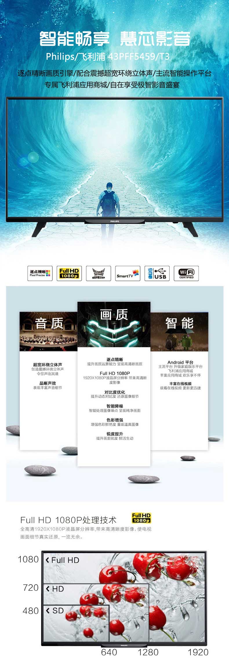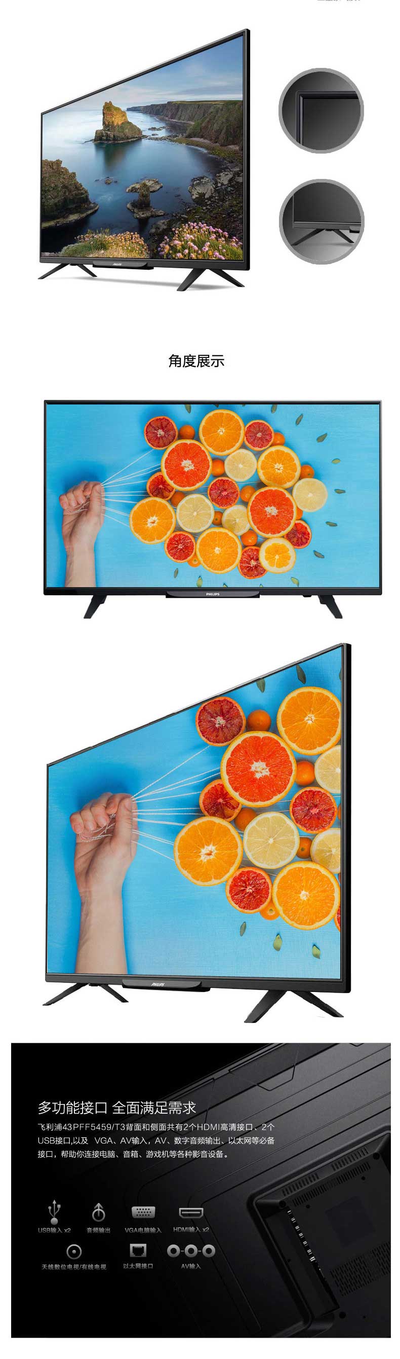 Philips/飞利浦 43英寸 LED液晶高清电视 43PFF5459/T3