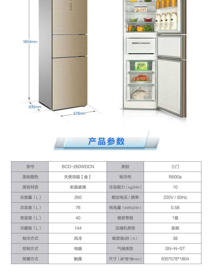 Haier/海尔冰箱 BCD-260WDCN 三门