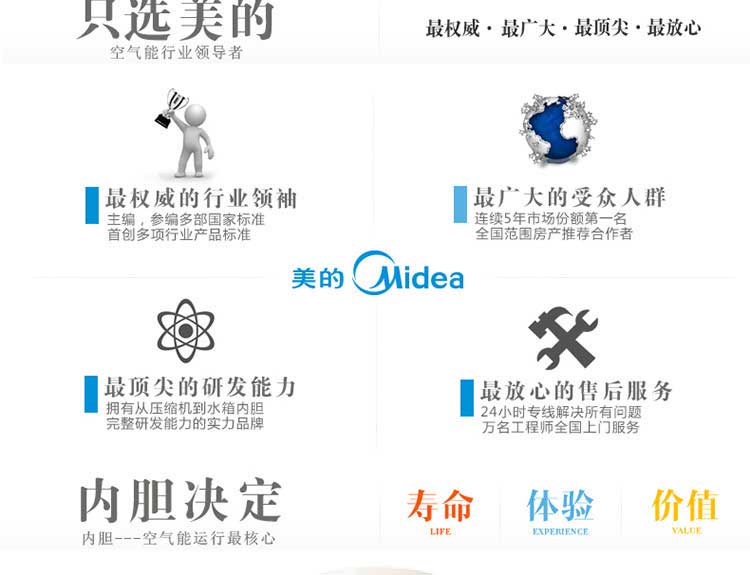 Midea/美的 蓝钻内胆空气能热水器 KF64-MC-200L