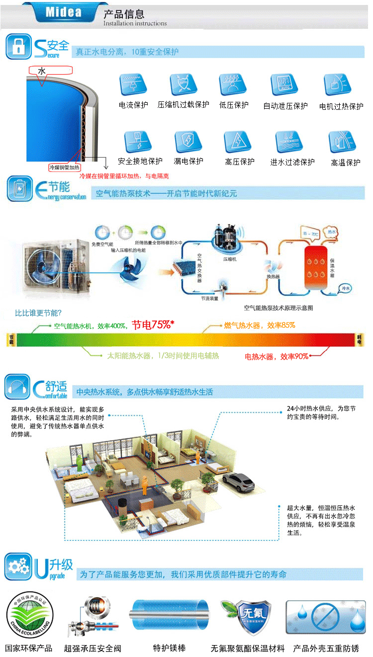 Midea/美的 空气能热水器 逸泉二代RSJF-32/R-150TP/D