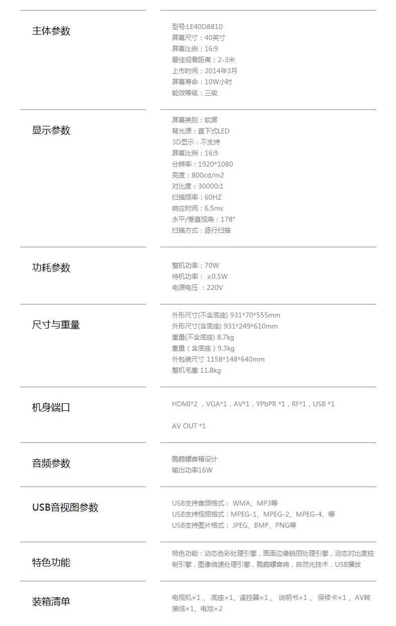 TCL/王牌 40英寸 LED液晶高清电视TCL40D8810