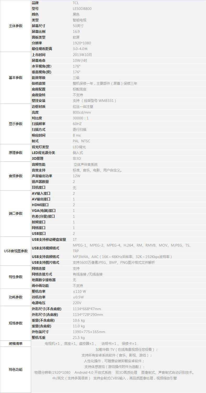 TCL/王牌 50英寸 LED液晶高清电视 TCL50D8800