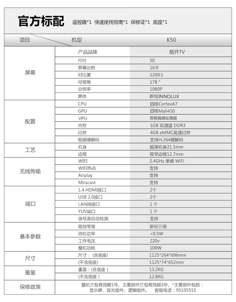 coocaa/酷开 50英寸 LED液晶高清电视 K50J