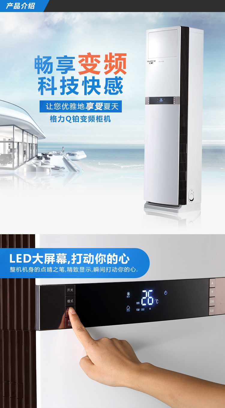 Q铂变频空调_精致外观防尘升降门_KFR-50LW/(50596)FNAa-A3 冷暖2匹机 立柜式